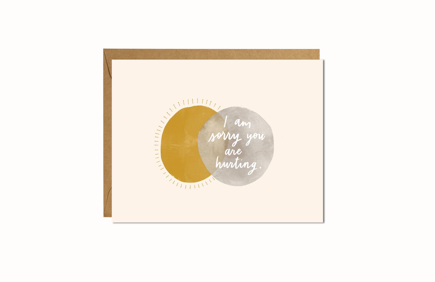 A minimalist sun and moon with the hand-lettered message, "I am sorry you're hurting". A simple, yet impactful gesture for a friend or family member who is hurting.