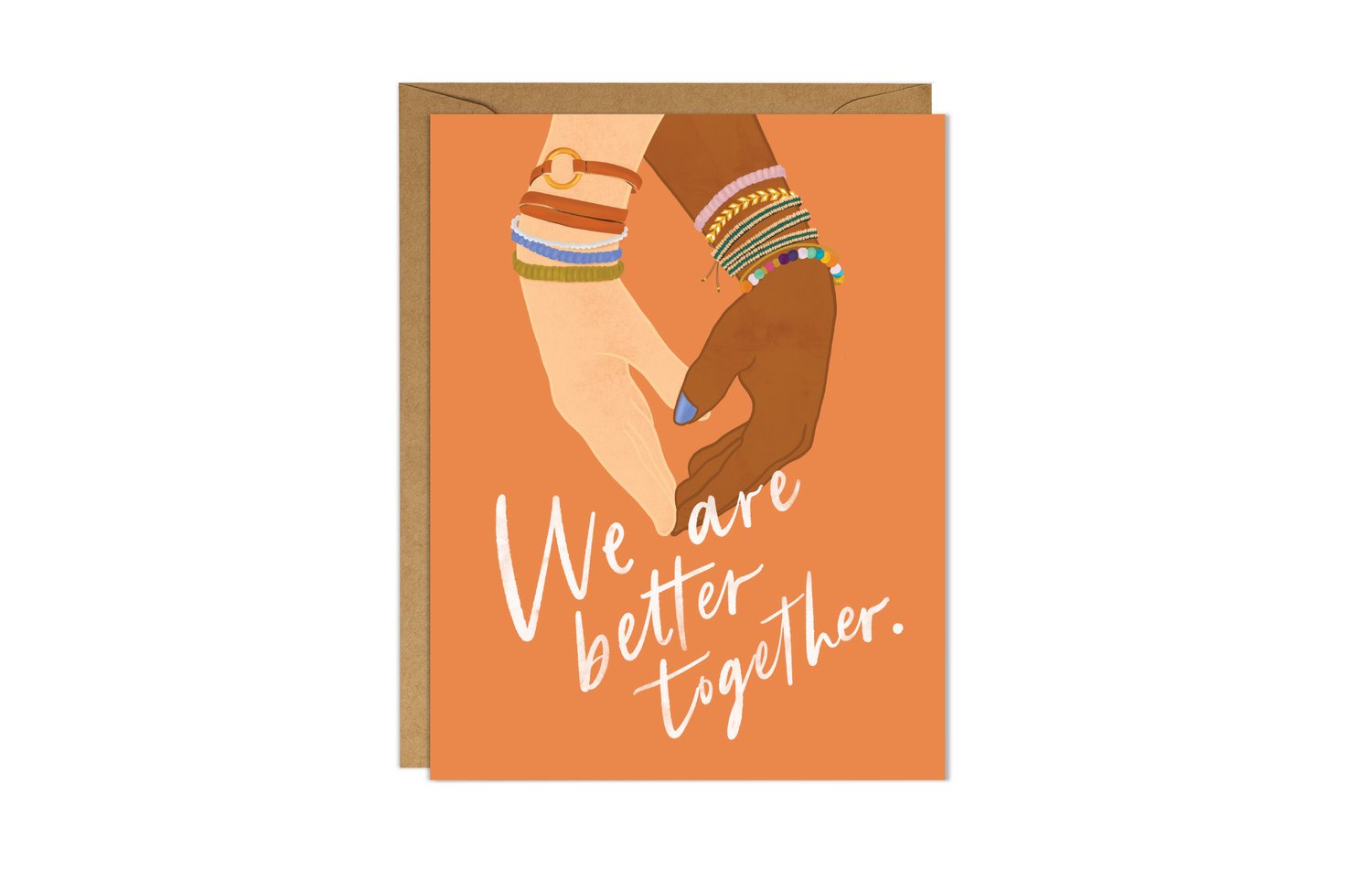 "We are better together" with two female hands in light and dark shades making the shape of a heart. These encouraging notecards can be used for endless possibilities. Perfect for Noonday Ambassadors and other socially conscious individuals making a positive impact in the world!