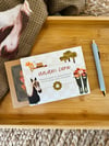 The Anam Cara Collection features 5 assorted whimsical illustrations with beloved animals—horses, dogs, and a fox—and lush autumn florals. Meaning "soul friend" in Gaelic, the anam cara is one to whom you can reveal the depths of your life; a compassionate presence. The title of each card is based on some character traits of people who make great friends: confidant, adventurer, amiable, attentive, and generous.